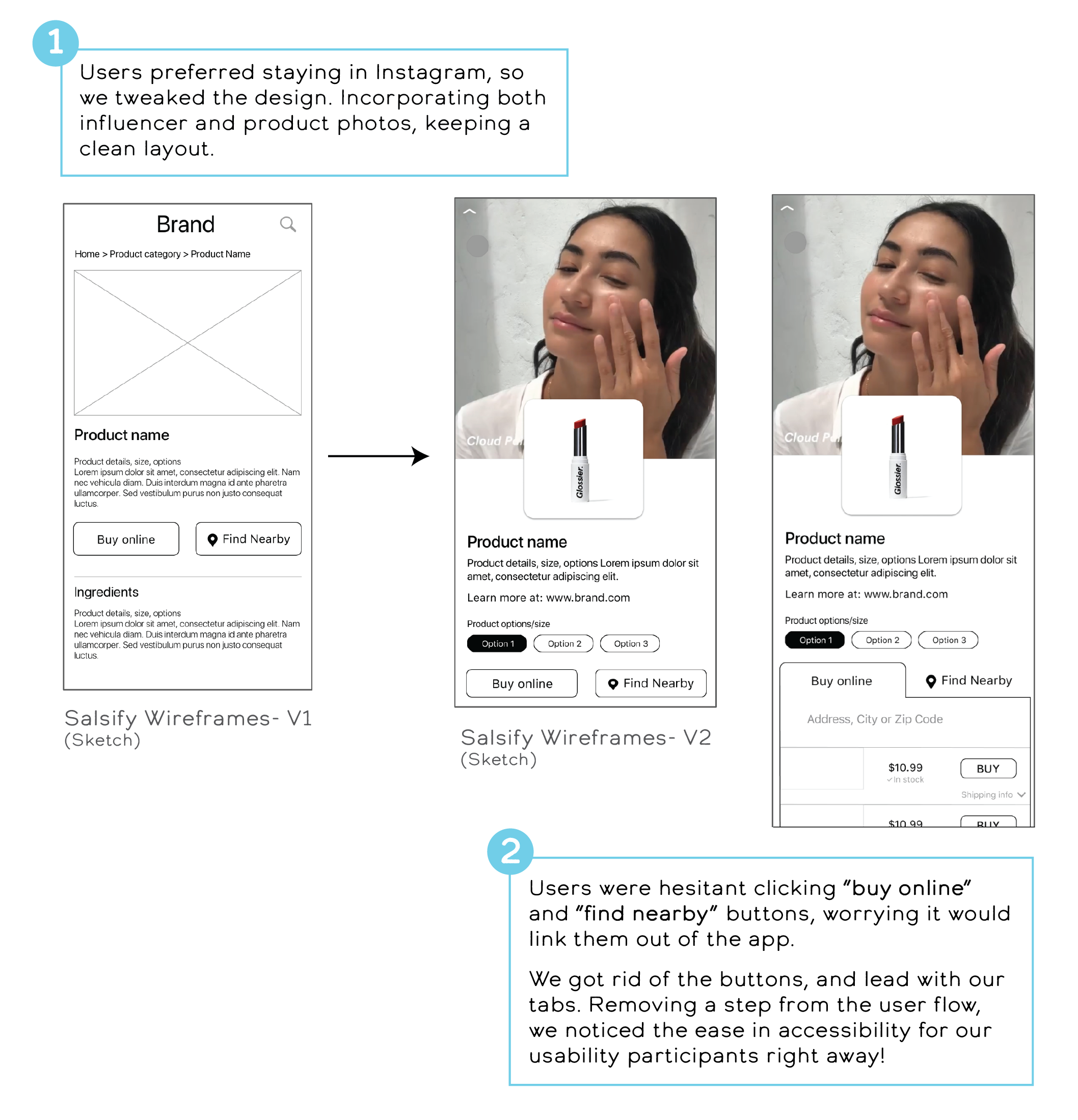 Salsify was extremely interested in Instagram shopping. With our findings demonstrating the power of word-of-mouth recommendations, we decided to leverage the success of Instagram influencer advertising and design a feature to drive CPG brand sales.