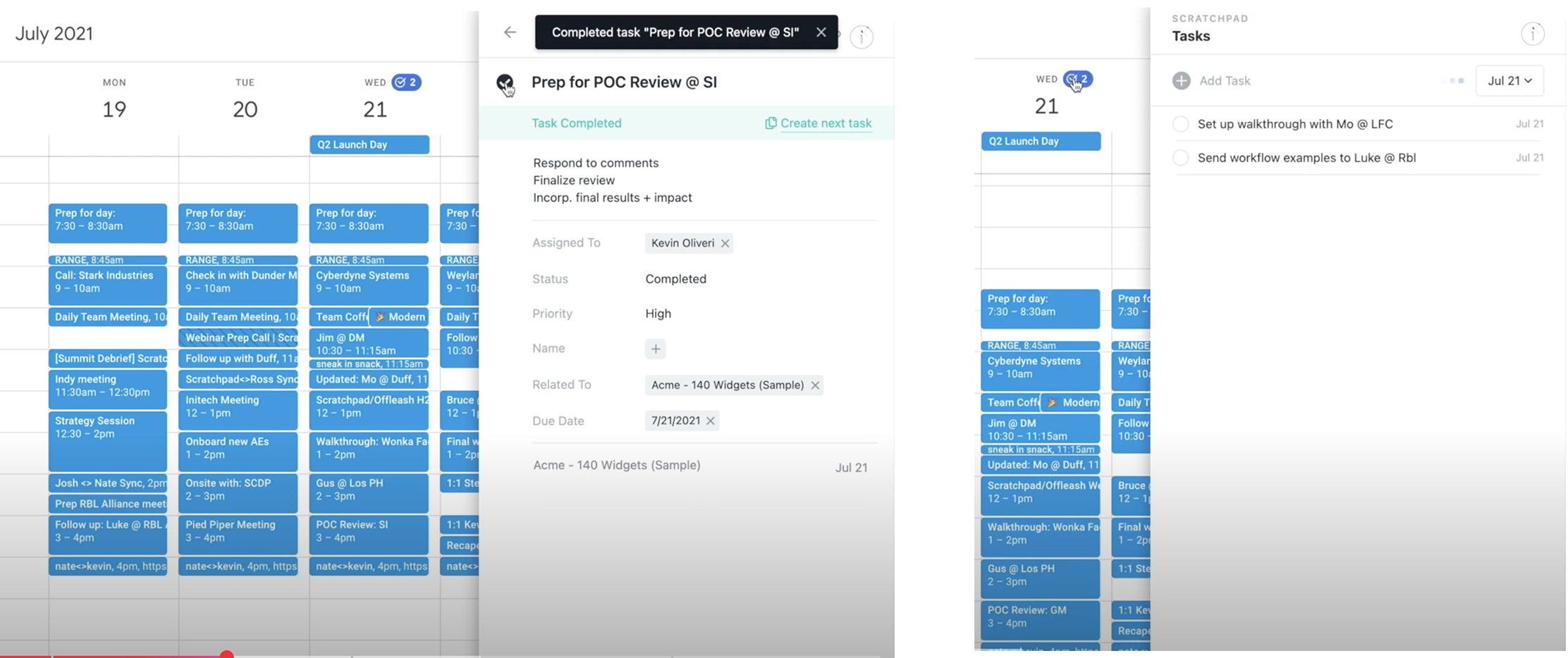 We looked at competitor solutions for tool fragmentation. The examples below show a Google calendar extension for task creation and note taking.