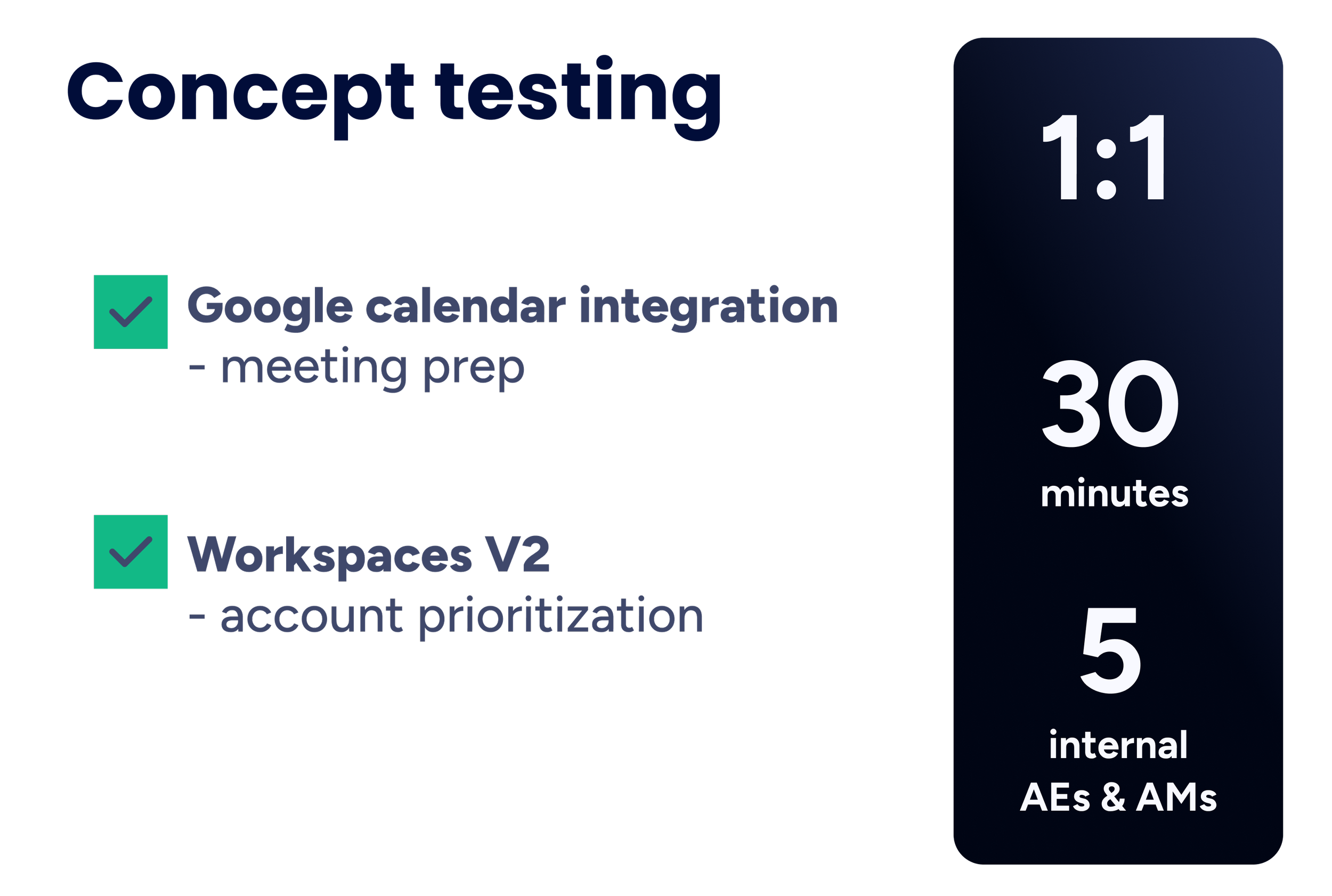 Led feature design for the Google calendar extension. Conducted internal concept testing to iterate, recorded the prototype demo which was presented to VP stakeholders.