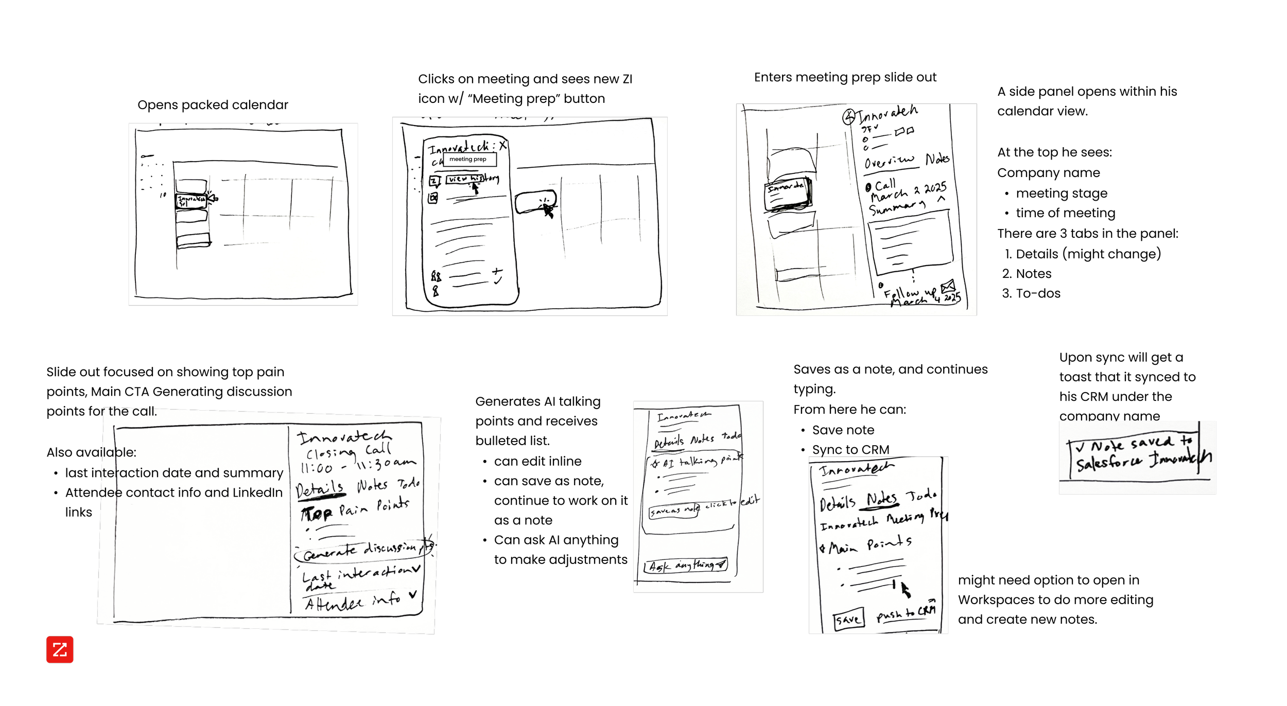 In collaboration with the Sales OS team at Zoominfo I designed the meeting prep tool as part of a vision concept to influence stakeholder planning in H2 2025.